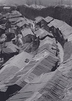 - After the war, the refugees who returned to the devastated Seoul formed large shanty towns throughout the city. Limb eung sik left many records of the lives of these refugees in shanty towns. This particular work captures the entire village from a higher angle, with houses winding along narrow paths. The houses are constructed so poorly, with relief tents from the U.S. military relief supplies and plywood. Along the narrow streets, people walking, laundry hanging on the walls, and vegetables drying on rooftops offer a glimpse into the lives of the refugees at the time.