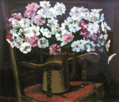 On the surface of his interior works, in which he incorporated several white porcelain jars from the Chosun Dynasty, which the artist used to love with a high sense of taste, were frequently introduced, and stilled with lilies, chrysanthemums, lilacs, forsythia and other kinds of flowers and persisted until the 1970s. The most popular among the aficionados was the painting of white and purple lilac flowers in a white porcelain jar. However, the simple taste of such enthusiasts is virtually irrelevant to the strict assessment of the work itself. There are other materials, of course, that the typical works of Do display prominently in the still paintings of other types of flowers, fruits, or other everyday materials, and there are many works of fine art and masterpieces among the landscape paintings. Strict objective expressions and heavy-toned moods are typical of the "Sangbong To technique" of objects, all of which are characterized by rigorous and clear objective observations, uniquely deep and weighty tone, and a certain sense of stability in the composition.